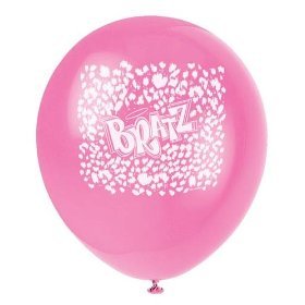 Bratz 12" latex balloons come with 8 to a pack and in 4 different colors, red, orange, blue and purple. Each has the Bratz logo and design. (Biodegradable, helium quality.)